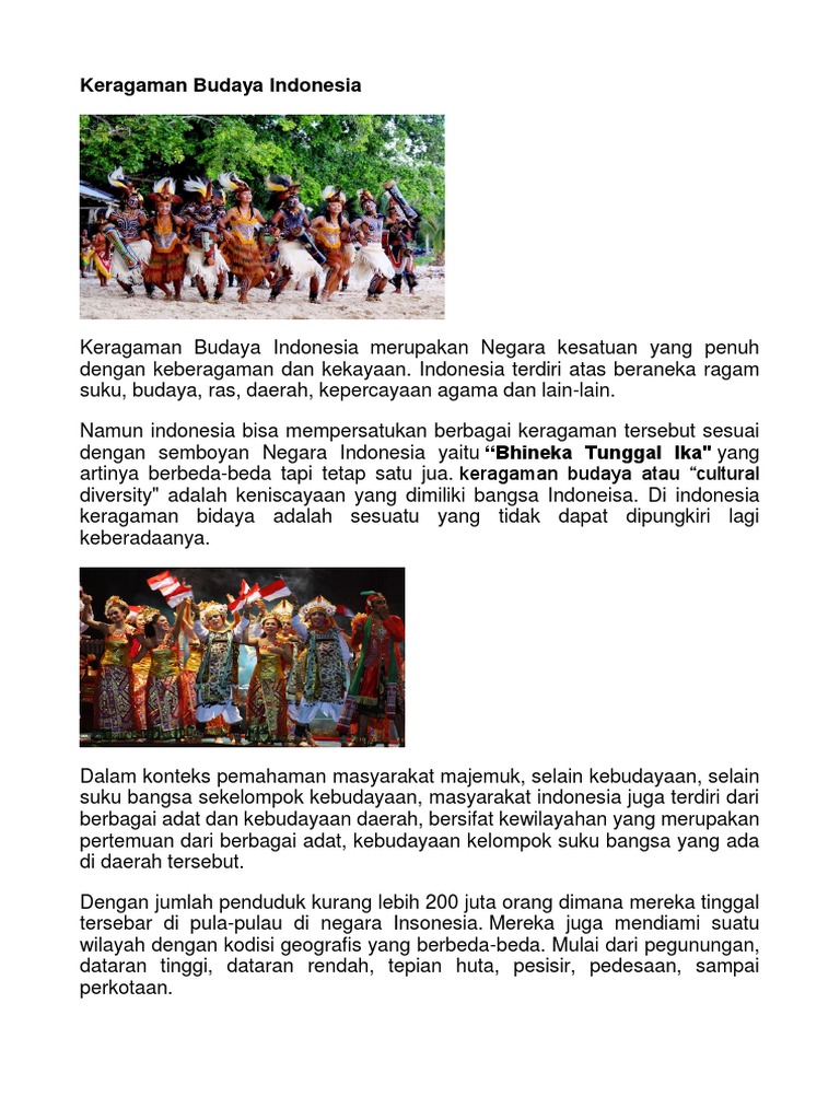 Contoh Keberagaman Kebudayaan Indonesia Yang Mendunia Lengkap from olympics30.com Narasi ragam budaya indonesia / ragam indonesia | gempita budaya di pesisir barat lampung. Agama yang beraneka ragam, pakaian adat, kesenian. Namun demikian bahasa indonesia adalah bahasa nasional yang juga merupakan pemersatu bangsa indonesia. Dan dibawah ini beberapa judul kata kata tentang budaya nusantara dalam bait puisi budaya indonesia atau puisi yang membahas tentang kebudayaan dan nusantara diterbitkan pisibijak.com antara lain: 06 oktober 2020 | buku. Published on ağustos 18, 2021 leave a reply Narasi ragam budaya indonesia : Wayang kulit bukan hanya berkembang di jawa.
